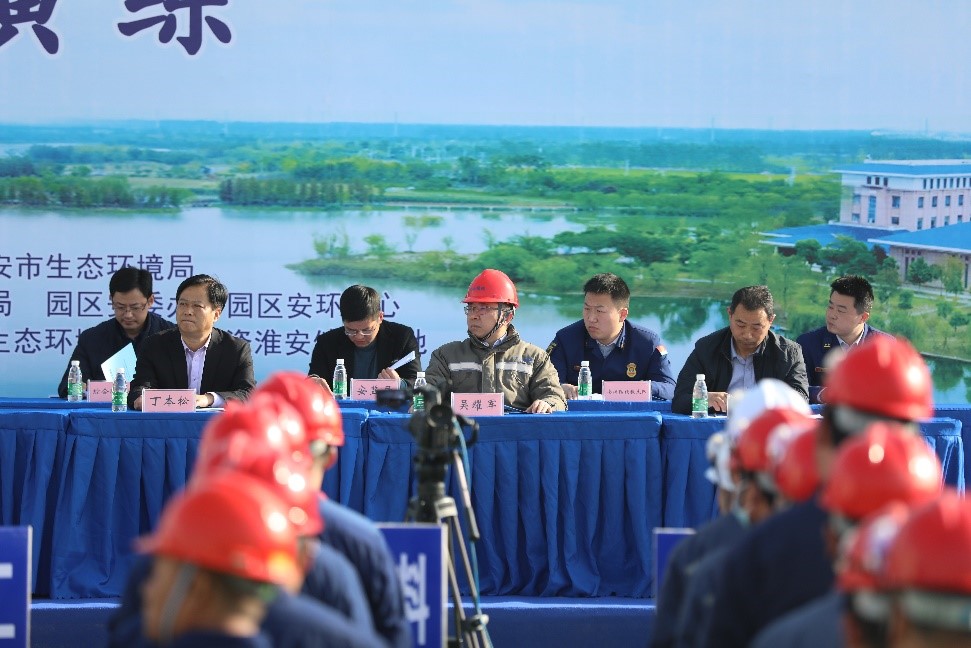 3月24日,淮安工業(yè)園區(qū)管委會與市生態(tài)環(huán)境局聯(lián)合主辦“2021年度突發(fā)環(huán)境事件應急演練”。淮安國瑞作為中旗科技全資子公司,積極響應園區(qū)號召,認真準備全力投入本次演練。園區(qū)領導楊國仁、丁本松、市生態(tài)環(huán)境綜合執(zhí)法局局長唐旭光蒞臨指導。
